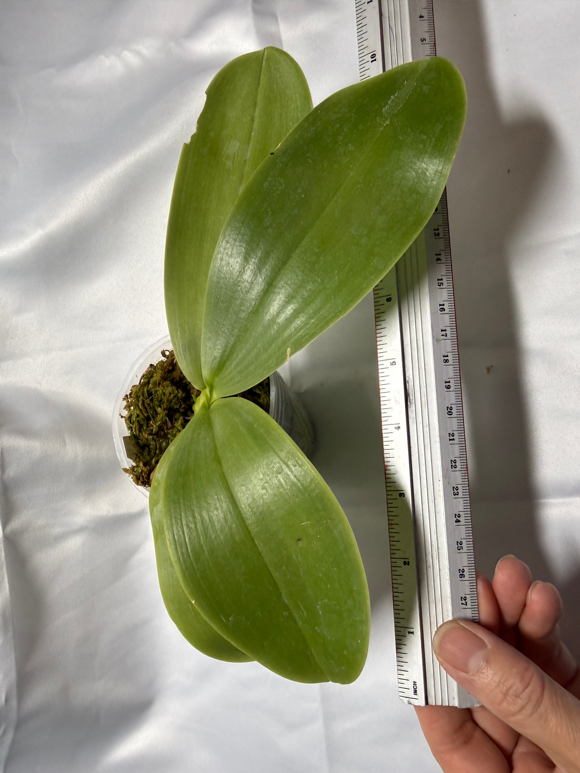 Mature size seed grown plant in 2.5 inch pot. in short spike to flower soon.