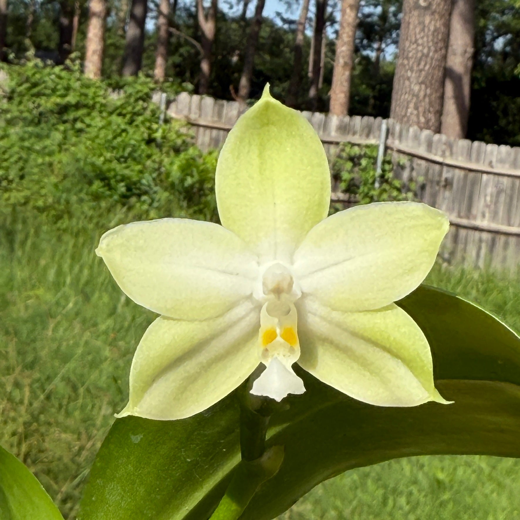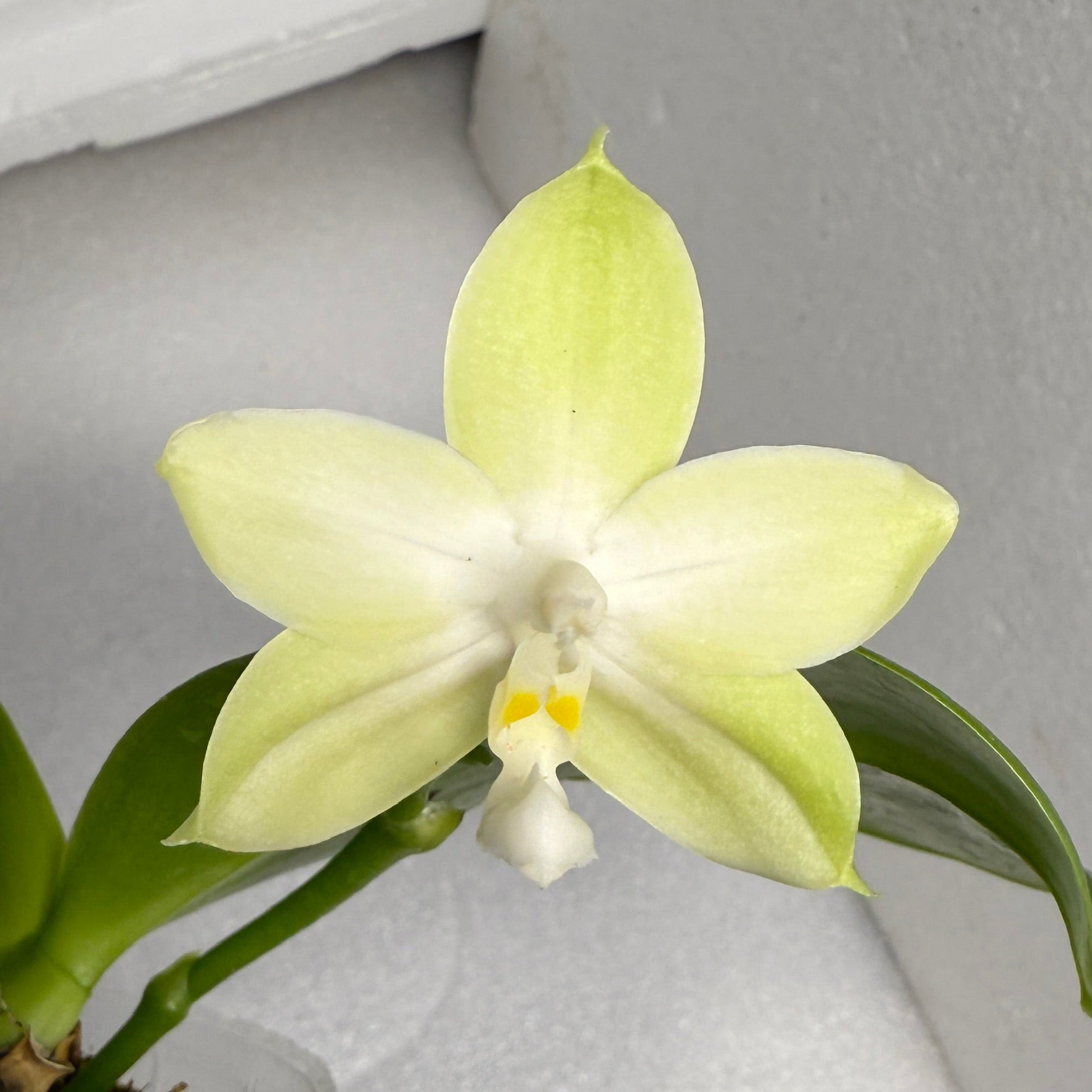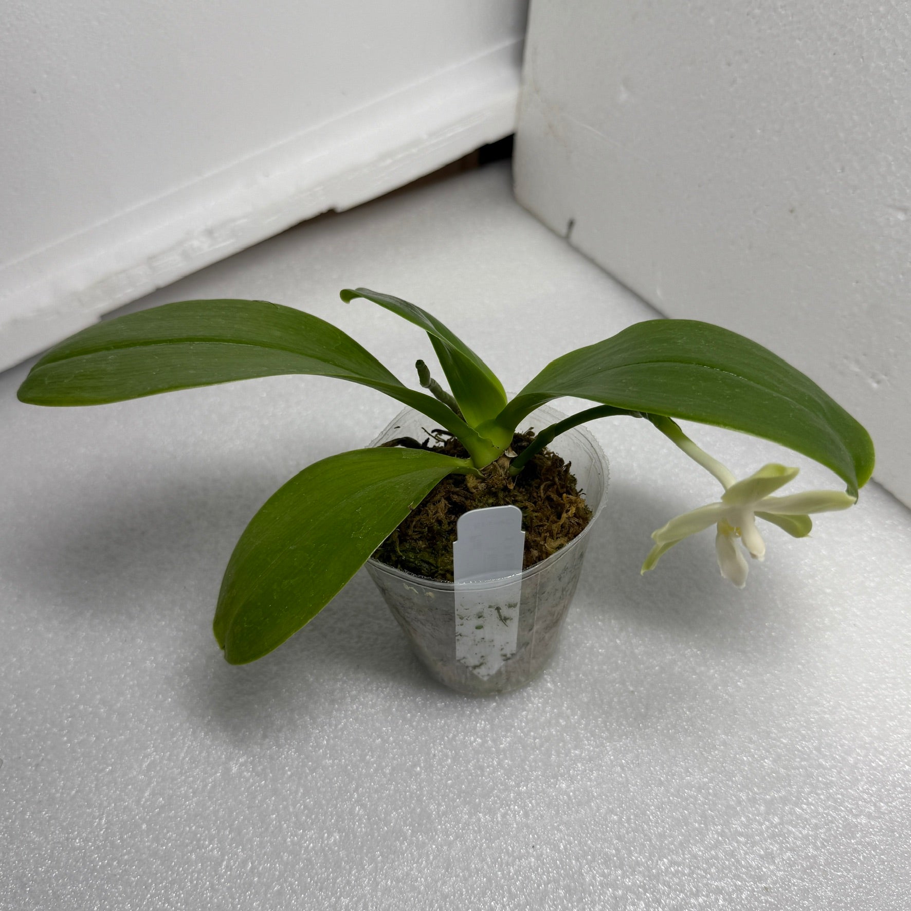Seed grown. Planted in 2.5 inch pot. Fragrant greenish white flower.