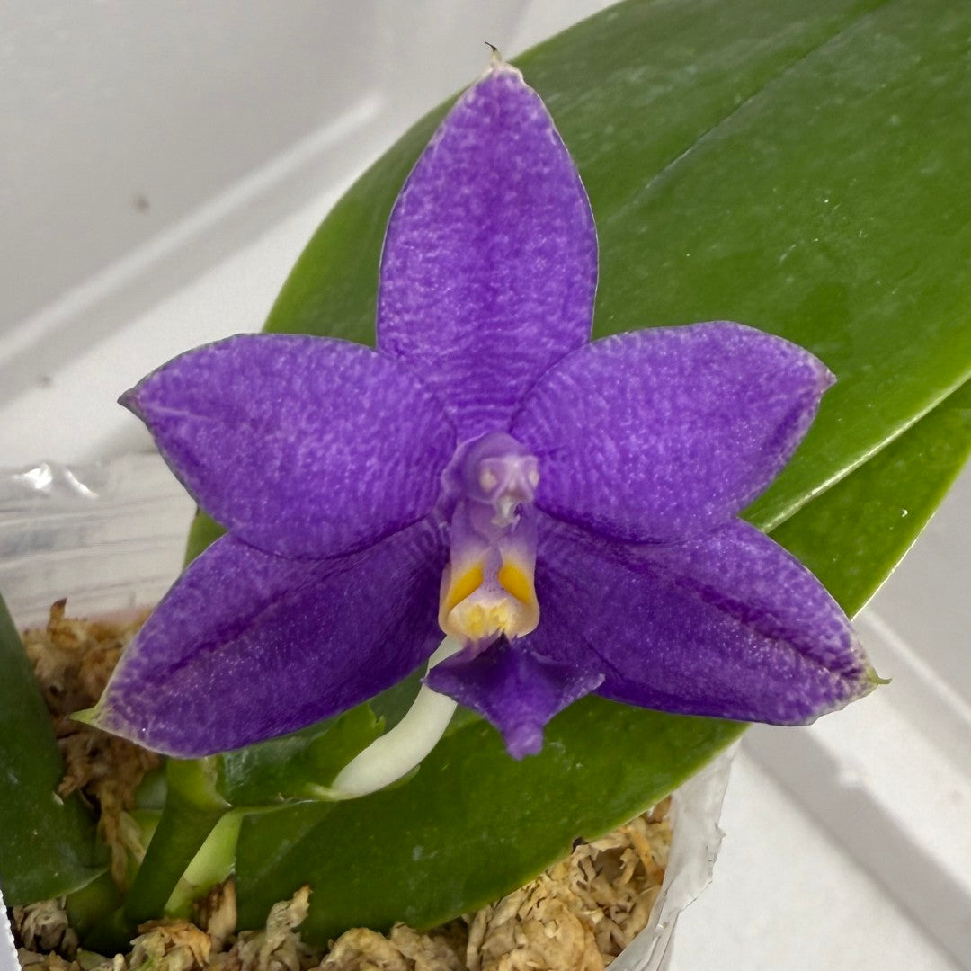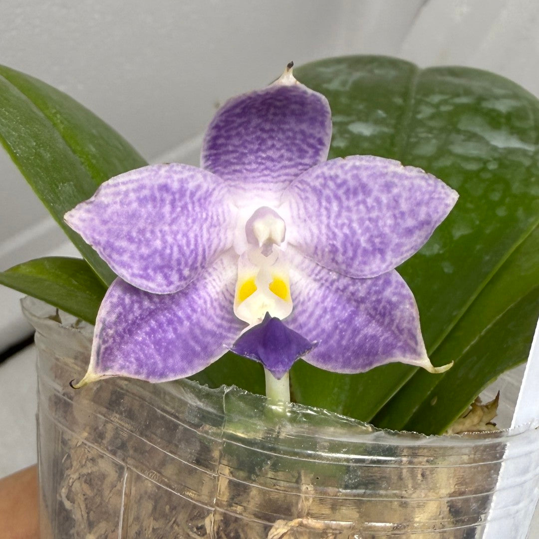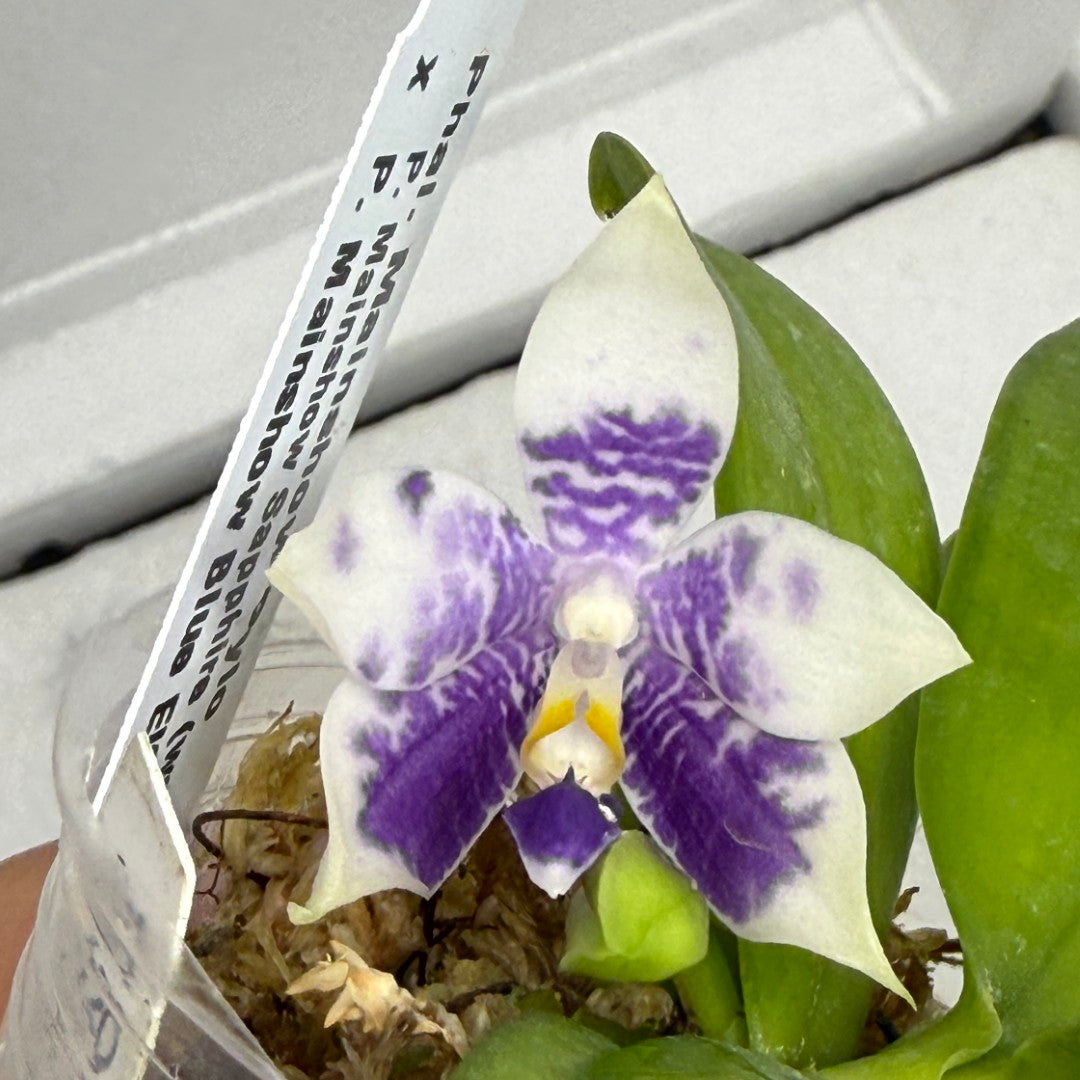 Parentage: Phalaenopsis (Mainshow Sapphire 'wax blue' x Mainshow Blue Elf '#1 blue')