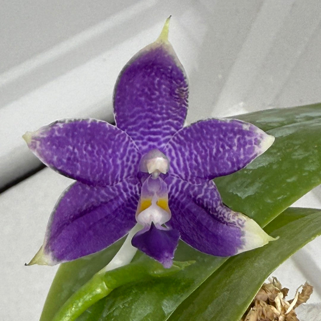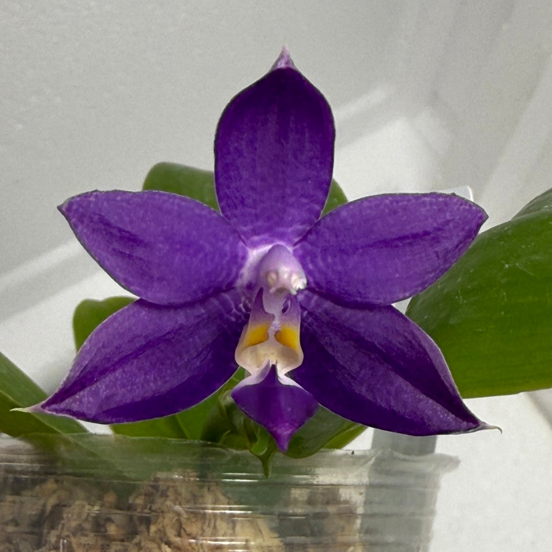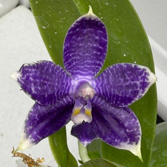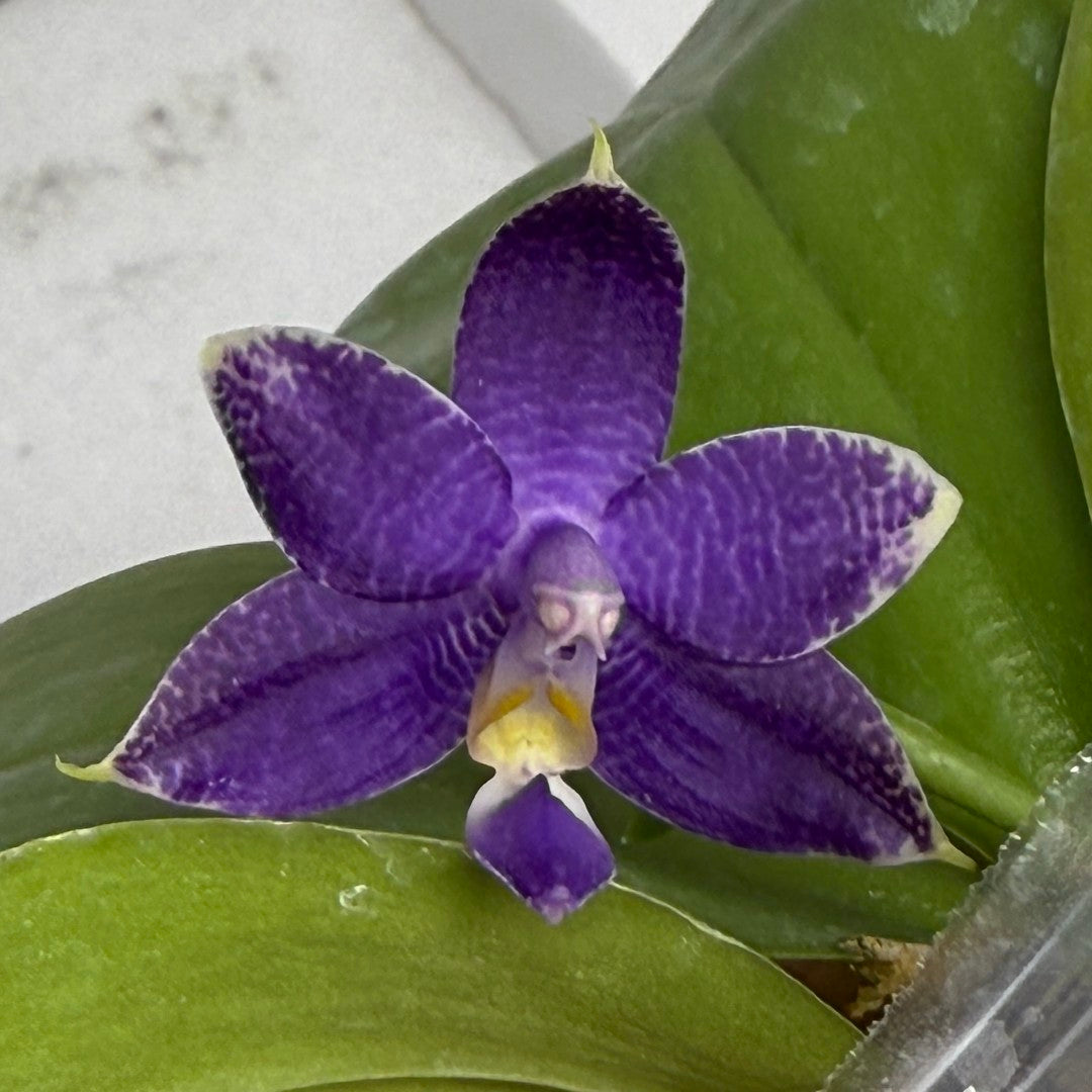 Parentage: Phalaenopsis (Mainshow Sapphire 'wax blue' x Mainshow Blue Elf '#1 blue')